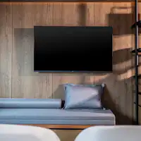■ リビング・ベッドエリア ・窓際の椅子(オットマン付き)やカーペットは、和の縦縞文様を現代的にアレンジした美しいデザイン。 ・室内 の明るさに合わせてテレビが画質調整する〝おまかせオートピクチャー〟搭載 、高画質、スタイリッシュレグザ (50インチ)を採用。 ・お客様ご自身のミュージックプレーヤーをテレビのスピーカーを通じて楽しめる (ステレオミニプラグ常設)。 ・ベッドのマットレスはシモンズ社製を採用。ポケットコイルのマットレスで、多数の点で体を支え寝心地の良さを追求。 ■ バスルーム・トイレエリア ・バスルームと居室の間の壁をガラスにすることで、開放感のあるバスルームを実現 (スクリーンを下ろすことも可能)。 ・バスタブを深めにし、シャワーエリアを隣接させた日本式のバスルームにすることで、シャワー利用時の快適性を向上。