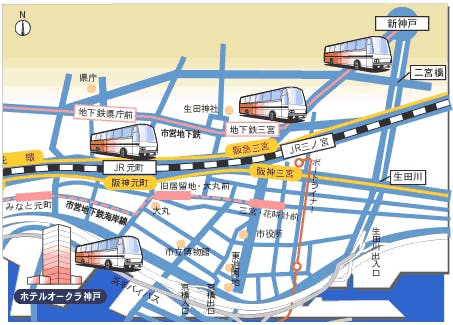 三宮バスターミナル(JR三ノ宮駅前・ミント神戸1階)より毎日運行いたしております。