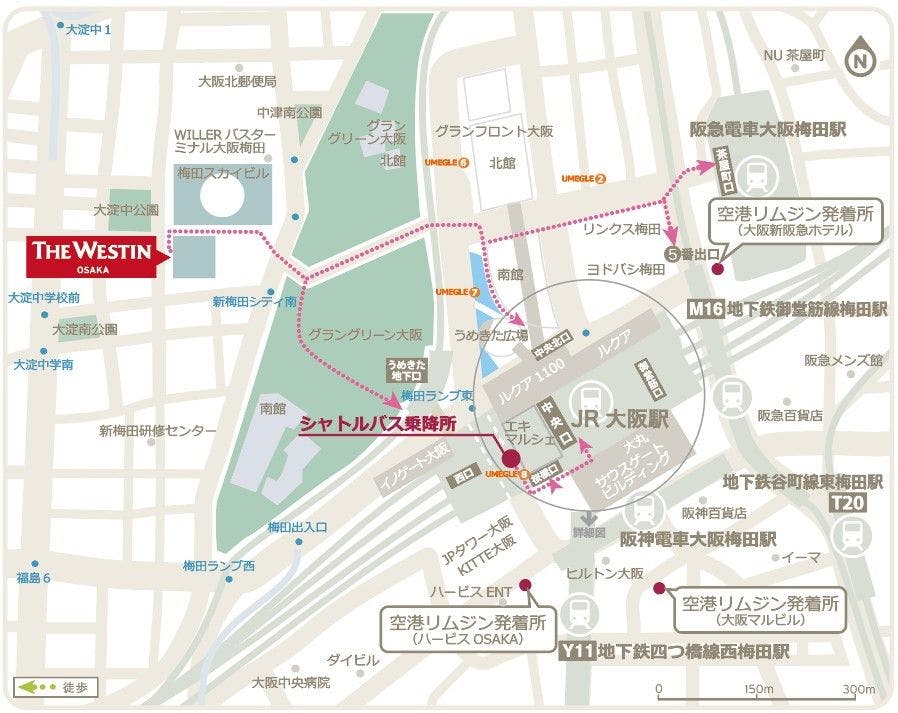 ■徒歩 ・JR大阪駅中央北口、うめきた地下口より徒歩約7分 ・阪急大阪梅田駅茶屋町口より徒歩約9分 ・地下鉄御堂筋線梅田駅5号出口より徒歩約9分 ■車 ・JR新大阪駅より約15分 ・大阪国際空港より約25分 ・阪神高速道路11号池田線福島ランプより約10分 ・阪神高速道路1号環状線から11号線に入り「梅田出口」より約5分 ・国道176号中津交差点より約3分 ■エアポートリムジンバス(ホテル~各空港間 送迎バス)※運休中 ・関西国際空港とホテル間にエアポートリムジン運行中(所要時間約1時間) ・大阪国際空港よりJR大阪駅周辺へのエアポートリムジン運行中(所要時間約25分) ■シャトルバス 無料シャトルバス JR大阪駅「桜橋口改札」西側のJR高架下部分に停留所がございます。 ホテル発 10:00-18:30 (30分間隔) 大阪駅発 10:10-18:40 (30分間隔) 時間は変更になる場合がございます。