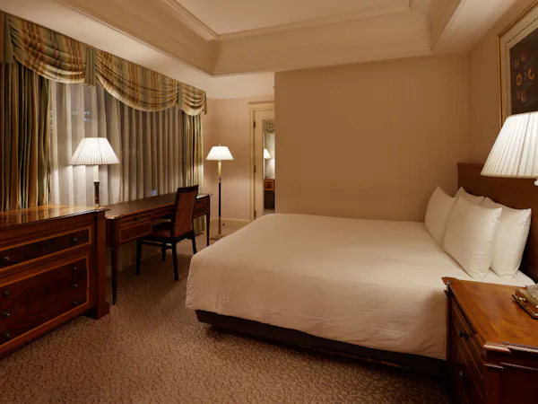 ベッドサイズはゆとりの160cm。大理石を随所に配置したバスルームをはじめ、ヨーロピアンクラシックにて統一されたこだわりの内装など、やすらぎとくつろぎの空間が広がります。
