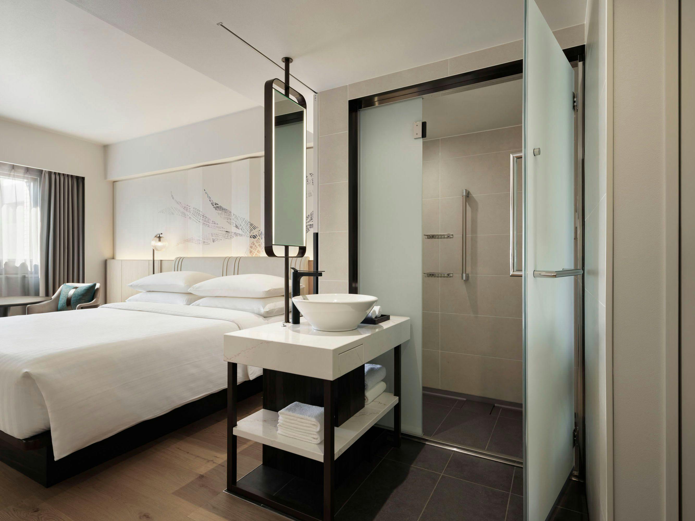 総客室数196室。バス・トイレ・洗面台を独立させた、使い勝手の良い水回りを新設。機能性・デザインとも充実させたこだわりの客室は、国内外の多様なゲストに対応できる構成を実現しました。