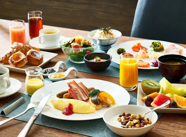 M3階「京懐石 美濃吉 竹茂楼」の夕食と、お好きな朝食レストランをお選びいただけるプランです。 「京懐石 美濃吉 竹茂楼」は、創業享保年間三百余年の歴史を誇る美濃吉本店「竹茂楼」の姉妹店。 移ろいゆく四季を愛でる京料理を、おもてなしの心としつらいでご堪能いただけます。 ■全席禁煙 ■ご夕食(ご宿泊日当日分) 京懐石のコースをご用意いたします お献立(一例) ・先附 ・椀物 ・向附 ・焼物 ・鉢物 ・御飯 ・水物 甘味 お薄 ご夕食は、17:30からのお席となります。 ※満席の場合は、ホテルよりご連絡をさせていただきます。 別途、ご希望時間がございましたら、事前にご連絡下さい。 17:00~20:00(ラストオーダー) ※仕入れ等の都合により、メニュー構成や食材の産地等が変更になる場合がございます。 ※写真はすべてイメージです。 <食物アレルギーをお持ちのお客様へ> アレルゲン表示義務特定原材料8品目(卵、乳、小麦、そば、落花生、えび、かに、くるみ)の食物アレルギーをお持ちのお客様は、お申し付けください。 アレルゲン表示義務特定原材料(卵、乳、小麦、そば、落花生、えび、かに、くるみ)以外の食物アレルギーについてはご対応いたしかねます。 ■ご朝食 ・2階 カフェレストラン「ル・タン」 ・M3階 和食「浮橋」