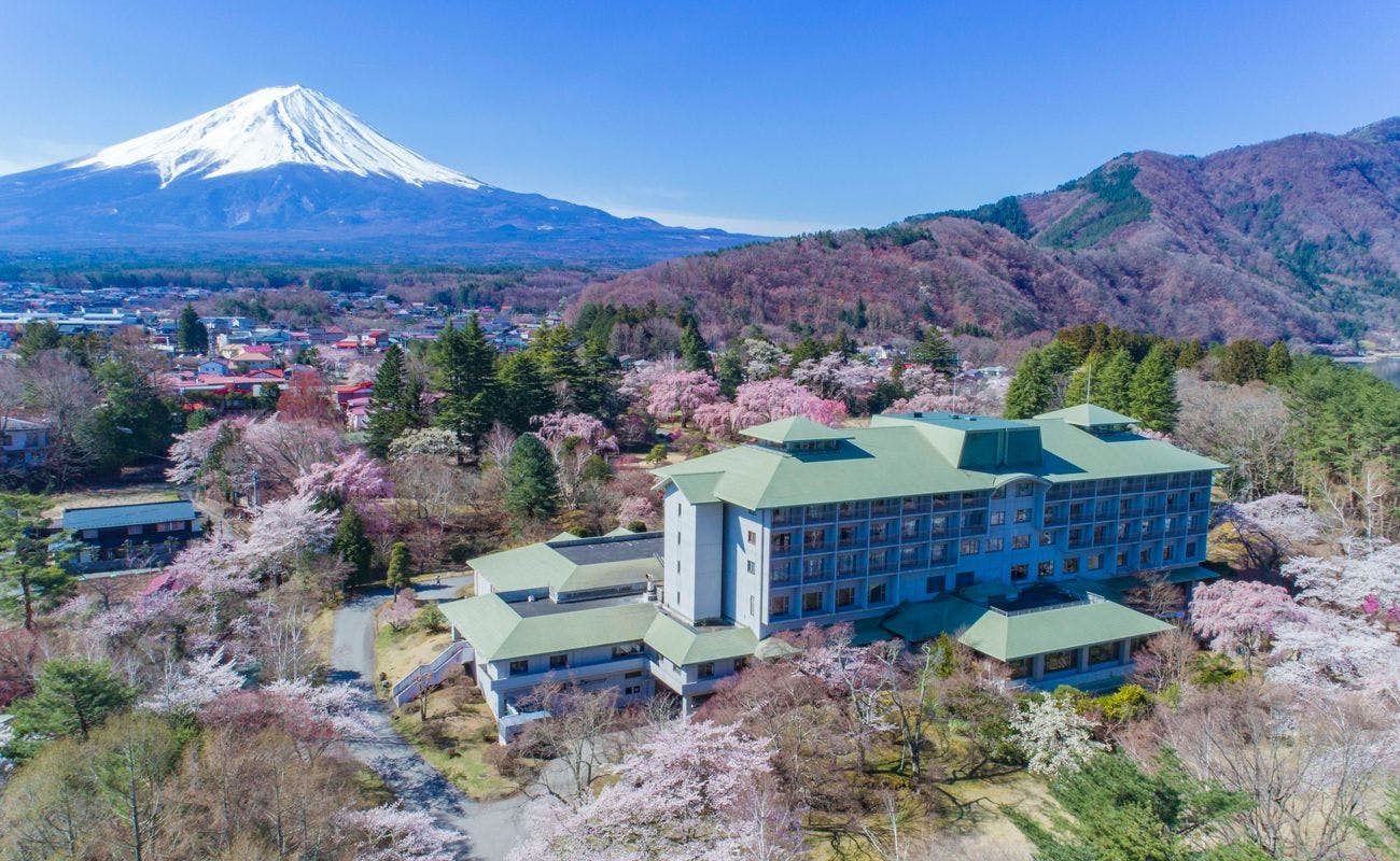 河口湖と富士山を望む、3万坪の庭園が広がるリゾートホテル