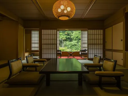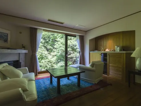 旅館ではございますが、旅館の良さそして、洋館のよさを組み合わせた宿でございます。純和風のお部屋の他に、お部屋の窓側にリビング、暖炉を設けたお部屋や、趣向を凝らしたお部屋、国定公園に佇む宿ですが、お部屋そのものが自然の中のようなお部屋、様々なお部屋をご用意してお待ちいたしております。