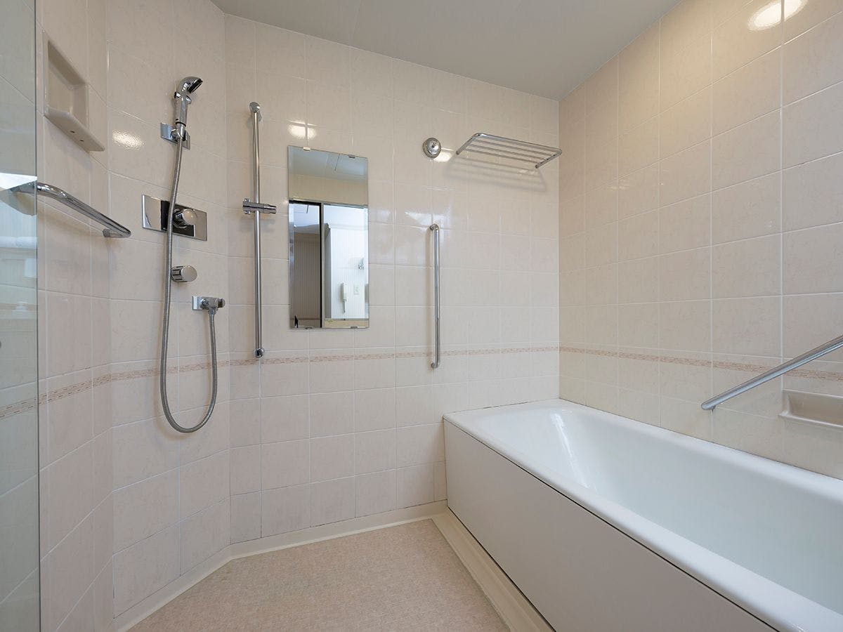 全室に備え付けられた広々としたバスルーム。浴槽と洗い場を独立させ、旅や日常の疲れを癒すための最適な空間です。(シングルルームを除く) 軟水使用の地下天然水と超微細な気泡でやさしく洗い流すマイクロナノバブルシャワーとの相乗効果でしっとり感やうるおいを体験してみてください。