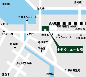 ■JR長崎駅東口から徒歩約5分 ■長崎空港からリムジンバスで約45分、長崎駅前下車、徒歩5分 ■車/九州自動車道を鳥栖JCTから長崎自動車道へ入る~長崎IC~ながさき出島有料道路出口から長崎駅方面へ約5分