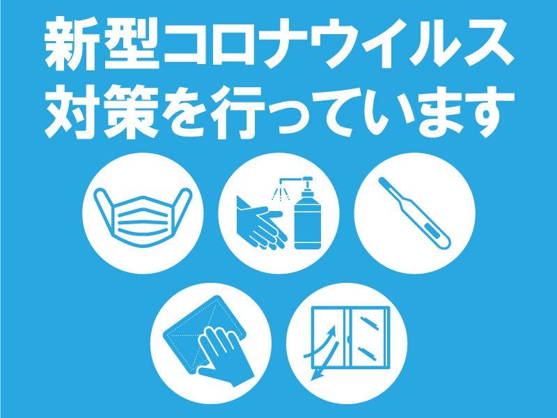 ・従業員は、「手洗い、うがい」「勤務前の検温」「手指のアルコール消毒」「マスクの着用」を徹底しております。
