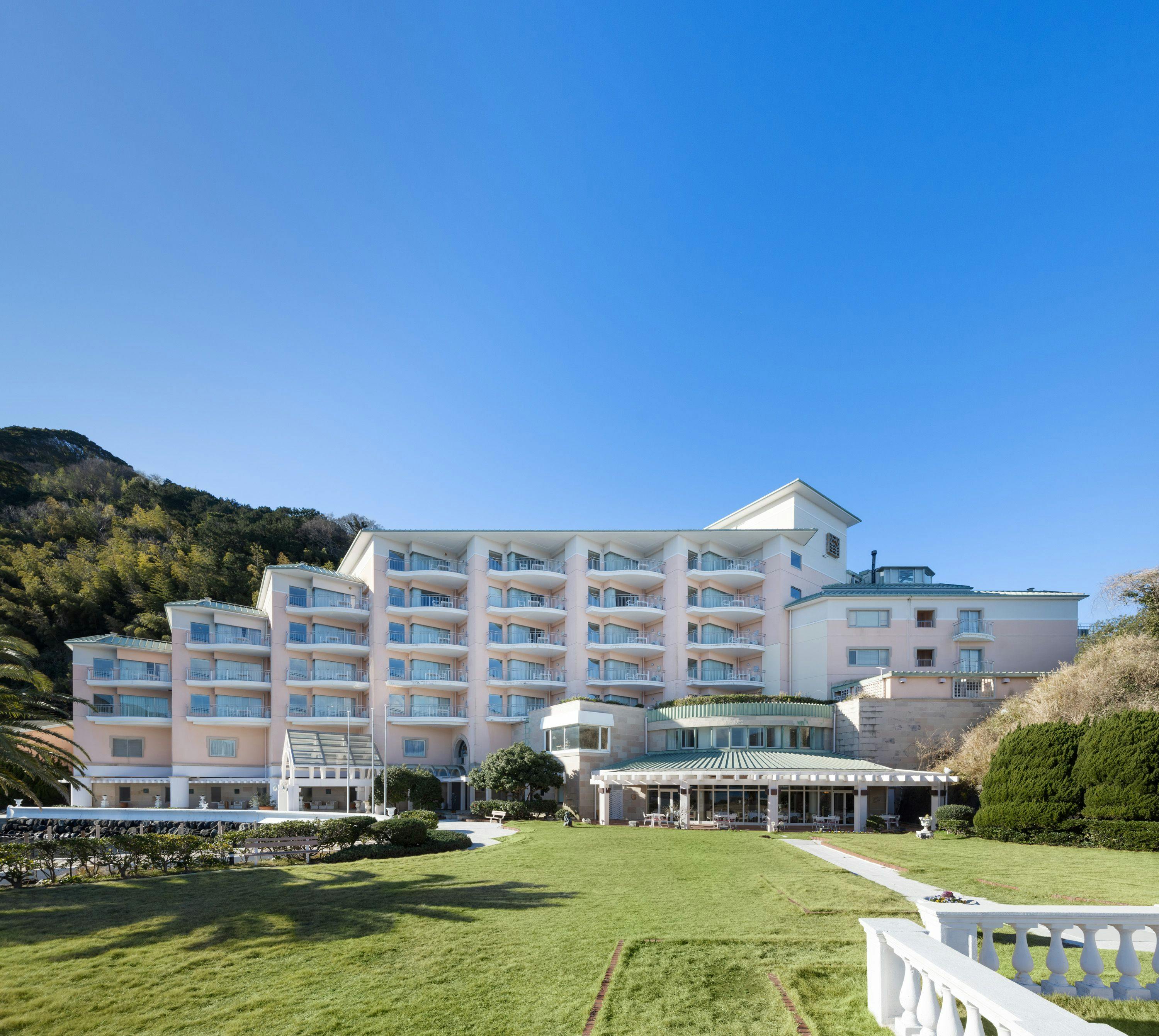 静岡県西伊豆、蒼い駿河湾に浮かぶ無人島「淡島」に建つ、南欧風のリゾートホテル「淡島ホテル」。 周囲2.5キロ、標高137メートルの小さな島「淡島」は、およそ700万年ほど前に海底火山として誕生したとされており、さまざまな形の岩と植物が自然の素晴らしさを感じさせる無人島です。360°海に囲まれ、駿河湾の向こうには美しくそびえ立つ秀麗な富士山の姿があります。 客室60室はすべて、リビングとベッドルームをそなえたスイートルーム、大浴場には海とつながったような開放感のある露天風呂もございます。レストランは、フランス料理、日本料理のレストランを揃え、静岡県産の新鮮な地場食材をふんだんに使った、季節のコース料理を、ご堪能いただけます。 南仏風のリゾートイメージで統一された館内で、駿河湾と富士山の景色を一望できるテラスで、日常から離れた旅の時間を、心ゆくまでお楽しみいただけるよう、お客様に寄り添った心からのホスピタリティで、皆様をお迎えいたします。