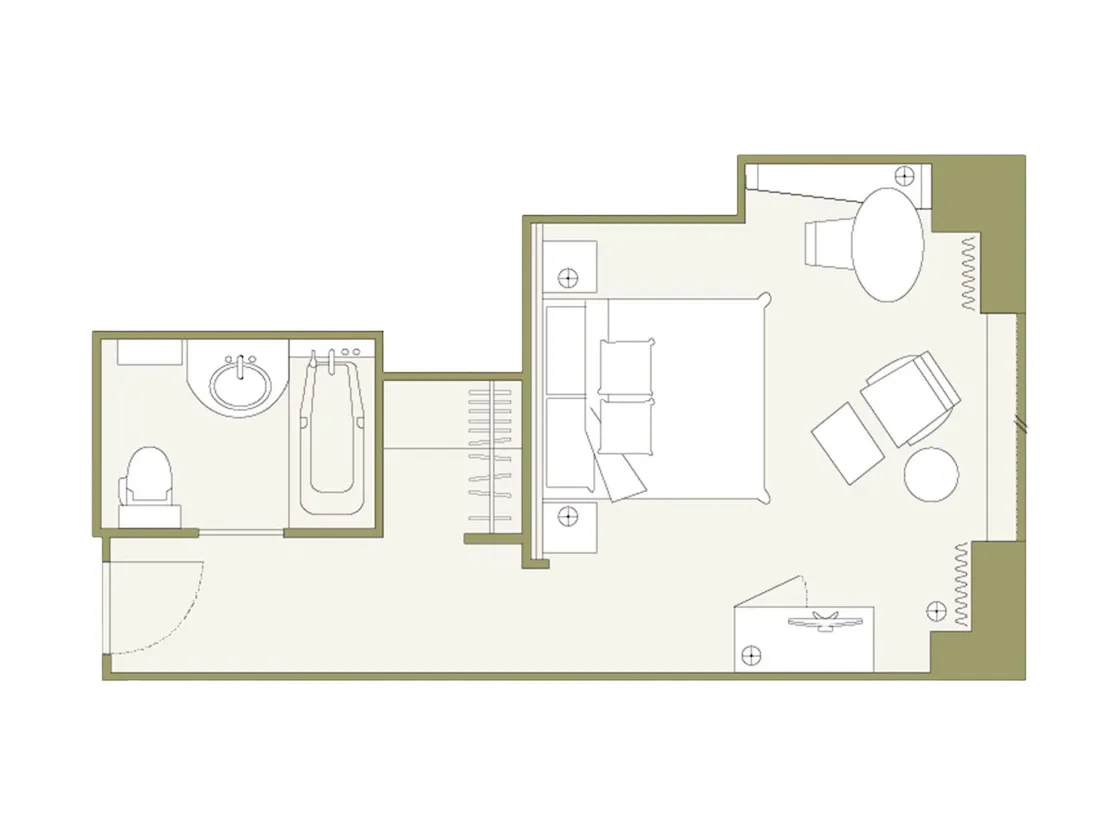 ベッドサイズ: 幅180cm × 長さ205cm × 1台 バスルーム: バスタブ・シャワースペース一体型 【客室設備】 ・ミネラルウォーター ・ネスプレッソコーヒーメーカー ・個別空調システム ・シャワートイレ ・除加湿空気清浄機(プラズマクラスター) ・ヘアアイロン ・計3種類の枕(テンピュール社製ピロー)