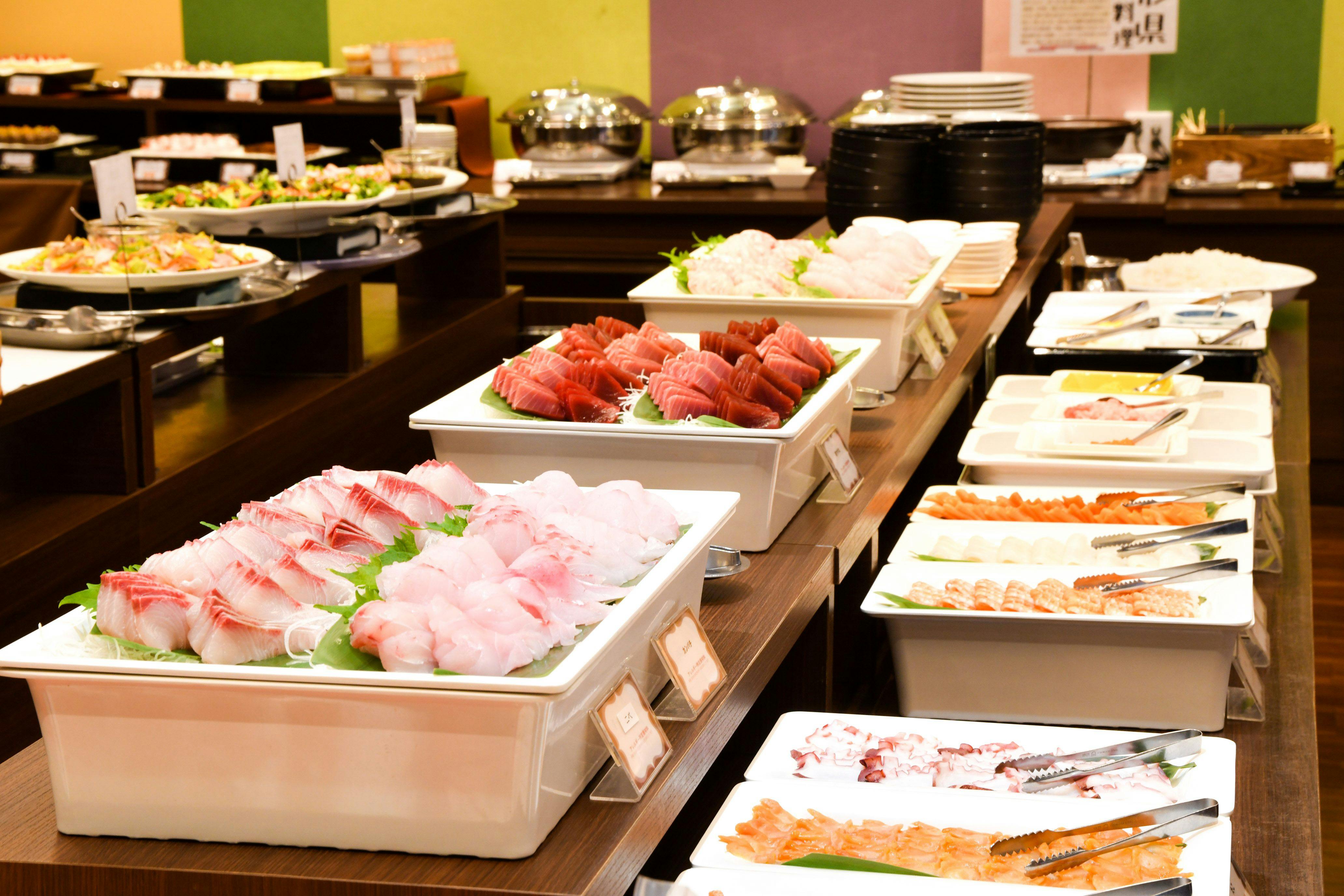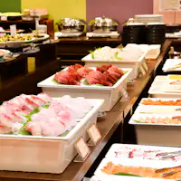 ご夕食は、相模湾の新鮮な魚貝をふんだんに使用した海の幸バイキングをお楽しみください。小さなお子様メニューも豊富にありますので、ご家族連れ様にも最適です。
