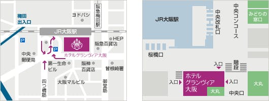 ◎JR大阪駅直結(大阪ステーションシティ・サウスゲートビルディング内、中央改札口を出て右手すぐ) ・新幹線「新大阪駅」より、JRで約5分(1駅) ・大阪伊丹空港より、お車で約30分 ・関西国際空港より、JR関空快速で約65分 ・京都へ JRで30分 ・神戸(三ノ宮)へ JRで20分 ・奈良へ JRで50分 関西の各方面へも、ホテル直結のJR大阪駅から乗り換えなしのアクセスです。