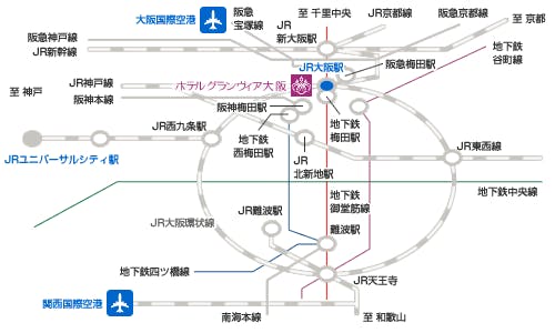 ホテルグランヴィア大阪はJR大阪駅にあり、様々な交通アクセスに恵まれた便利で快適な都市型ホテルです。全室ブロードバンド対応(無料)。