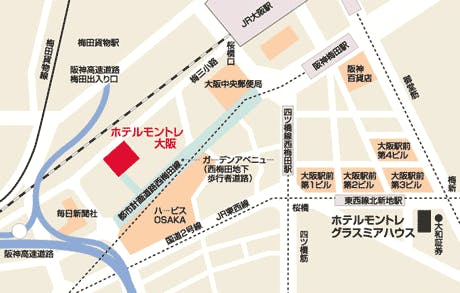 ※各駅とも地下道で連結(出口6-30) ●JR大阪駅 西口徒歩3分 ●J阪神電鉄大阪梅田駅・地下鉄四つ橋線梅田駅徒歩5分 ●JR東西線北新地駅徒歩6分 ●地下鉄御堂筋線梅田駅徒歩8分 ●地下鉄谷町線東梅田駅徒歩9分 ●阪急電鉄大阪梅田駅徒歩12分