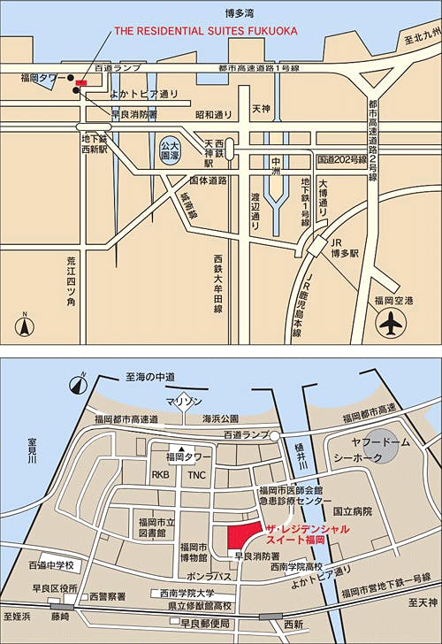 ○電車でお越しの場合 地下鉄「西新駅」1番出口より徒歩10分 (福岡空港より9駅19分・博多より7駅13分) ○車でお越しの場合 福岡都市高速道路経由「百道」出口2分 ○バスでお越しの場合 天神・博多より約20分、「医師会館・ソフトリサーチパーク前」下車徒歩3分