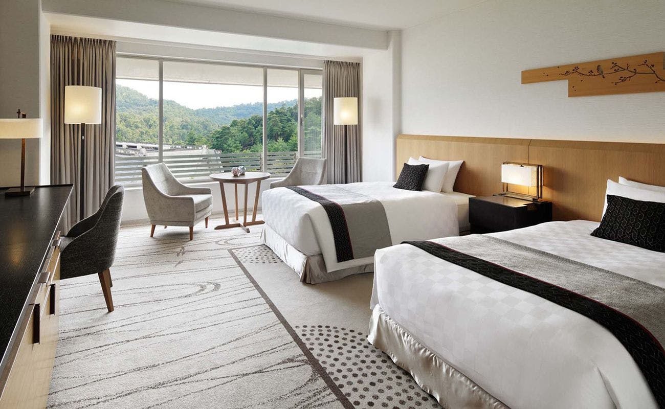 京都駅から地下鉄で乗り換えなしで20分、大原・貴船エリアへの観光にも便利です。 全室36.9 平米以上の客室から望むのは、宝ヶ池公園や比叡山など贅沢な自然景観。 京都らしい自然と円形を基調とした優雅な建築美に浸ることができます。 京情緒を感じる緑あふれるこのホテルで、静かで洗練された環境でリラックスした大人の旅をお楽しみください。