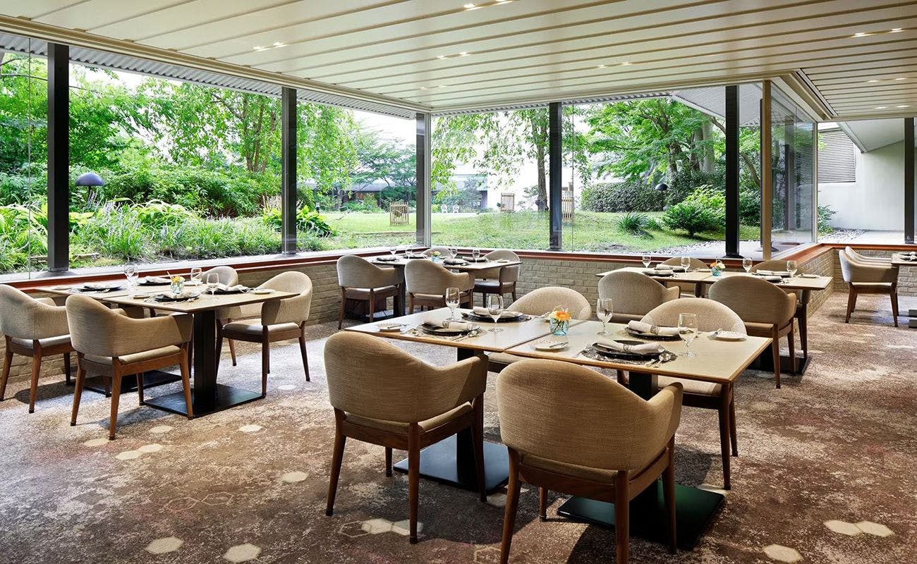 ホテル敷地内の日本庭園に建つ数寄屋造りの茶寮。瀧の音を感じられる造りで、障子に映り込む、水の流れる様子も和の風情溢れるお座敷です。 1組4名さまより会食のご予約を承ります。 ご利用の7日前までにご予約ください。