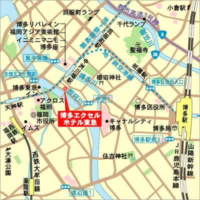 「中洲川端駅より徒歩1分」 九州最大の繁華街・中州の中心部に位置する博多エクセルホテル東急。国際色豊かなこの街で、心地よいやすらぎのひとときを。観光にビジネスに、貴方の旅を優雅に演出いたします。