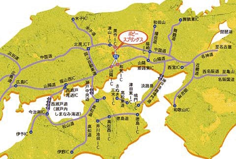 ■ハイウェイバスご利用の場合 京阪神からのアクセスはJR大阪駅より津山駅行きハイウェイバスにお乗りくださいませ。約2時間30分ほどで最寄の美作インターに到着します。美作インターまで無料送迎させて頂きます。(要予約) 17:00以降は送迎できません。送迎が必要な方は事前にご予約ください。 ■JRご利用の場合 JR林野駅まで無料送迎させて頂きます。(要予約) 17:00以降は送迎できません。送迎が必要な方は事前にご予約ください。 ■宇野バスご利用の場合 岡山・倉敷方面からお越しの方は、JR岡山駅より宇野バス“湯郷温泉行き”にお乗りくださいましたら約1時間30分で最寄のバス停(湯郷温泉下)に到着します。バス停からは、徒歩で2分程です。 ■マイカーご利用の場合 広島から2時間30分/大阪から2時間/瀬戸大橋から1時間30分/明石海峡大橋から2時間 /尾道から2時間10分/米子から1時間30分/岡山市内から1時間30分