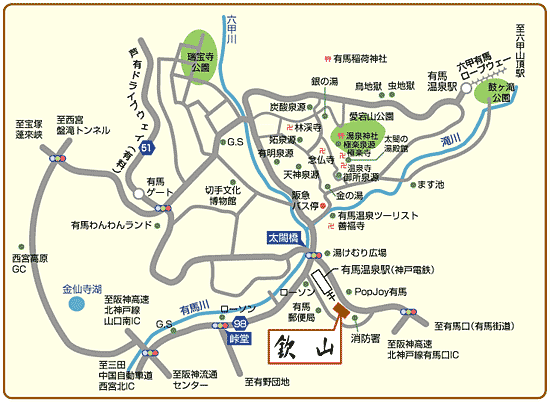 阪神高速北神戸線経由→有馬口I.Cより5分