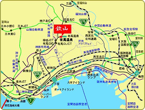 新神戸トンネル・阪神高速北神戸線経由→有馬口I.Cより5分