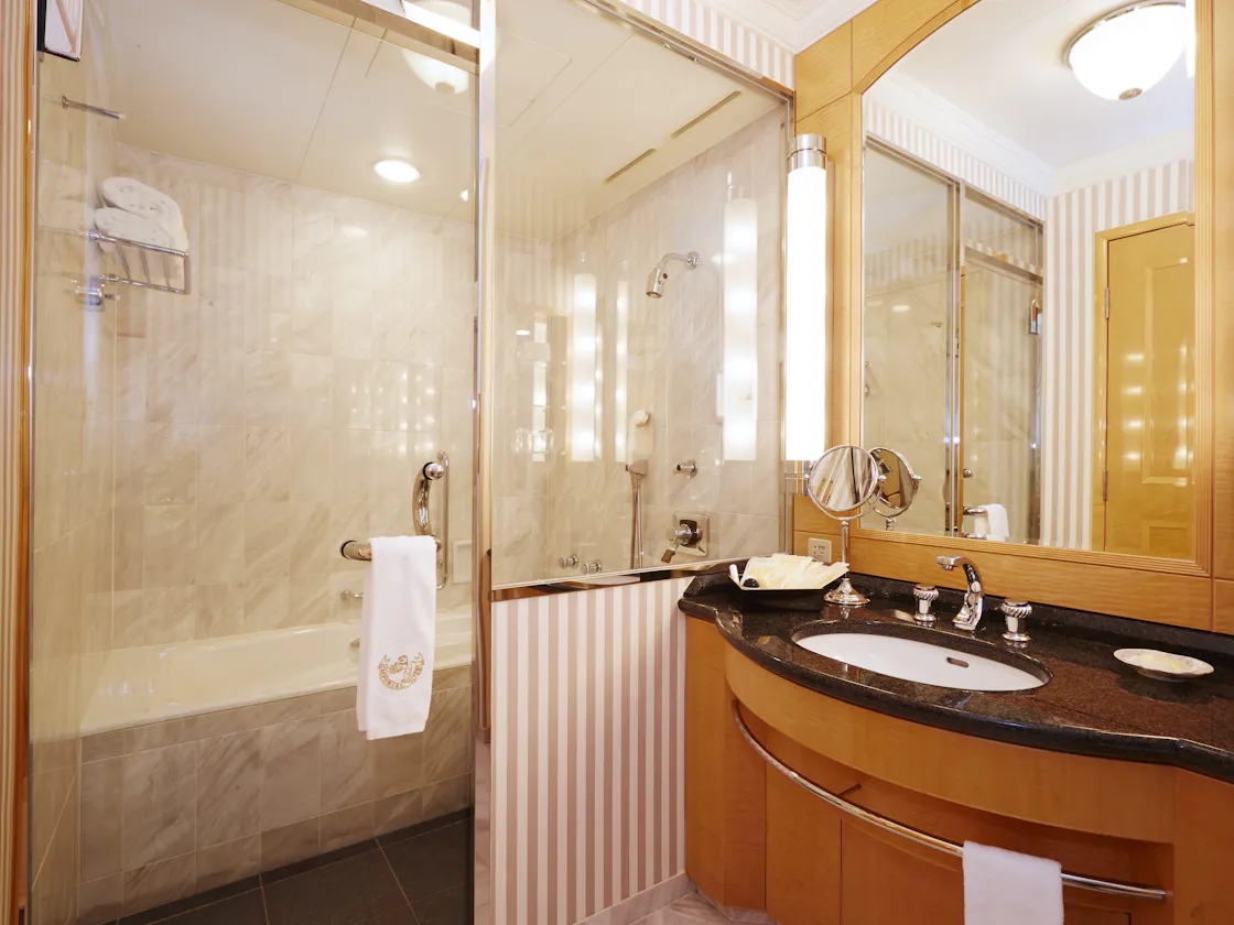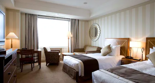 ■デポジット(前受け金)のご案内■ ご到着時、以下の方法にてお支払いのお手続きをお願いいたします。 <クレジットカードの場合> カードをプリントさせていただきます。 <現金の場合> 宿泊料金の150%相当をお預かりさせていただき、チェックアウト時に差額を精算させていただきます。予めご了承ください。 ■下記時間は1階正面玄関、川側遊歩道出入口を閉鎖しております。閉鎖時間中はスロープで2階宿泊玄関をご利用いただくか、各出入り口に備え付けのハウスフォンで係までご連絡いただきますようお願いいたします。 <閉鎖時間> 1階正面玄関・桜広場 各出入口/23:30~7:00 川側遊歩道出入口/22:30~7:00 ■フィットネスクラブのご利用について■ 18歳以上のご宿泊のお客様のみ有料にてご利用いただけます。スイート・インペリアルフロアにご宿泊の18歳以上のお客様は無料でご利用いただけます。 ※毎月第3火曜日および2026年10月19日~21日の3日間は、メンテナンスの為、休館させていただきます。 ■大阪府宿泊税■ 大阪府の条例により宿泊税を別途ホテルでお支払いいただきます。(5千円~1万5千円未満:200円、1万5千円~2万円未満:400円、2万円以上:500円)