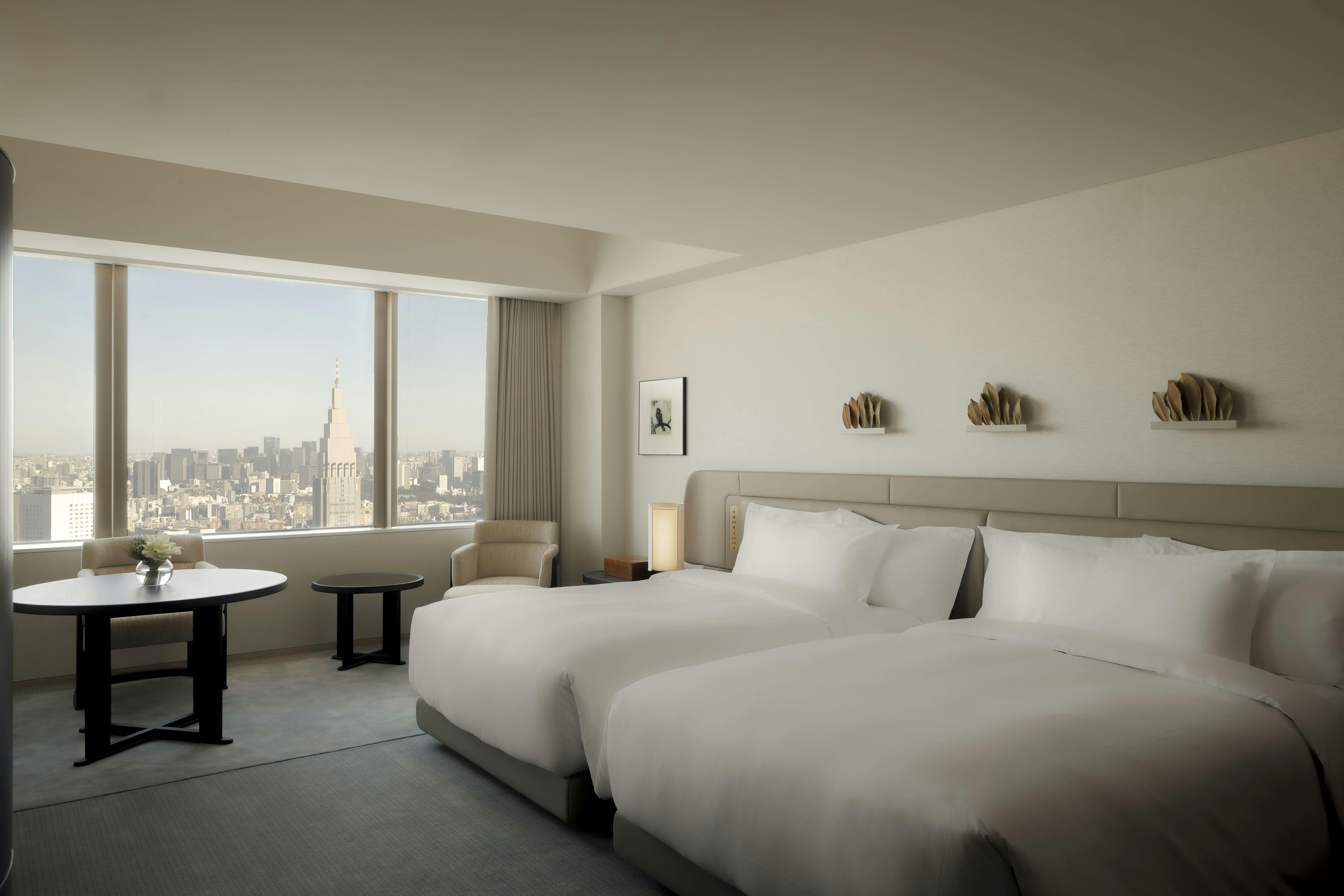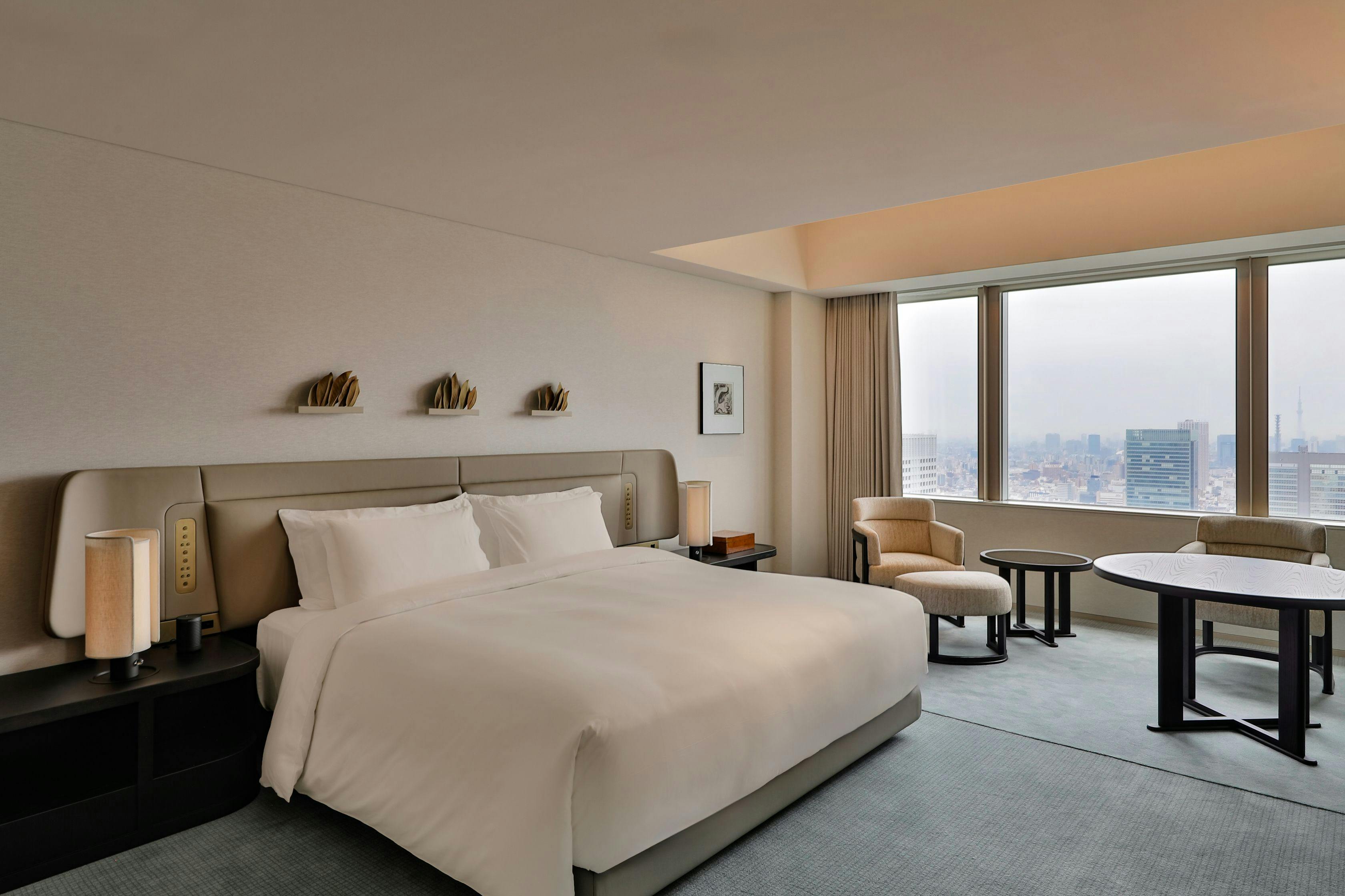 全171室の客室はすべて42階以上に位置し、東京を一望する素晴らしい眺望が広がります。広々としたバスルーム、自然のぬくもりを感じる洗練されたインテリアの非日常空間で、心地よく上質なホテルステイをご堪能ください。