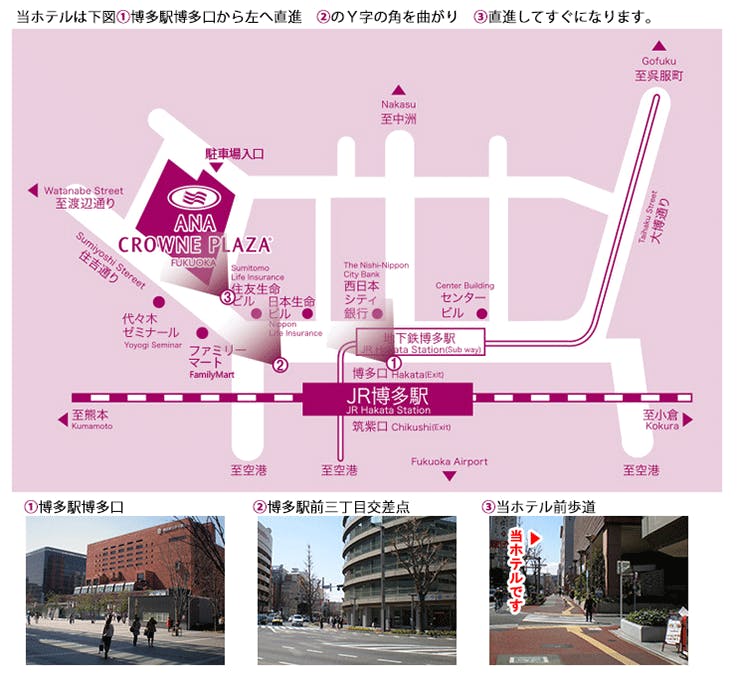 【JR・地下鉄】 博多駅下車、博多口より徒歩5分 【車】 福岡空港より車で約15分