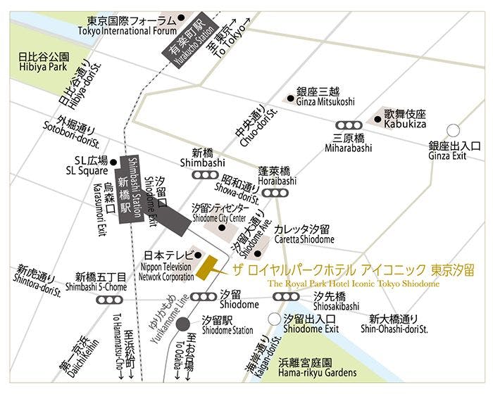 JR新橋駅 汐留口より地下通路 徒歩約3分 地下鉄 新橋駅より地下通路 徒歩3~5分 都営地下鉄大江戸線・ゆりかもめ 汐留駅より 徒歩1分 東京駅よりタクシーで 約10分 羽田空港方面よりタクシーで 約30分 成田空港方面よりタクシーで 約80分 首都高速道路・銀座出入口より 約5分 首都高速道路・汐留出入口より 約3分 ※所要時間は、時間帯により多少異なります。また、待ち時間、交通渋滞による時間の遅れなどは含まれておりません。時間は最も近接する汐留地区までの距離を想定して算出したものです。