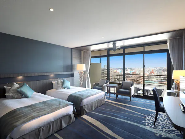 バルコニー付の最上階客室から望む市街の夜景をお楽しみいただけます。お天気の良い日は遠くに海も・・。 最上階の落ち着いた客室と上質なアメニティで穏やかな時間をお過ごしいただけます。 大人の旅行やカップル、記念日などのご利用におすすめ。 ■広さ:約34平米 ■ベッド:幅120センチ×長さ200センチ ■フロア:ロワジールホテル那覇(本館)12階 ■特徴:50インチテレビ・独立洗面台・ロクシタンアメニティ・基礎化粧品セット ■特別備品:ヘアドライヤー(ReFa)・ヘアアイロン(ReFa)・多機能シャワーヘッド ■眺望:シティービュー 【客室清掃に関するご案内】 当ホテルでは、環境負担軽減への取組の一環として、ご滞在中の客室清掃は、1日おき(奇数宿泊日)に行わせていただきます。 ・偶数宿泊日の清掃は行わず、客室への入室もいたしません。 ・タオル、アメニティ類はあらかじめ2日分ご用意させていただきます。 ・ご希望のお客様には有料にて追加清掃を承ります。(前日24:00までに要申込) ■全清掃:室内清掃、カーペット、バスルーム の清掃 をいたします。(2,000円) ■ベッドメイク:シーツ、 ピロケースを交換し、ベッドメイクいたします。(1,000円) 何卒ご理解、ご了承賜りますよう宜しくお願い申し上げます。