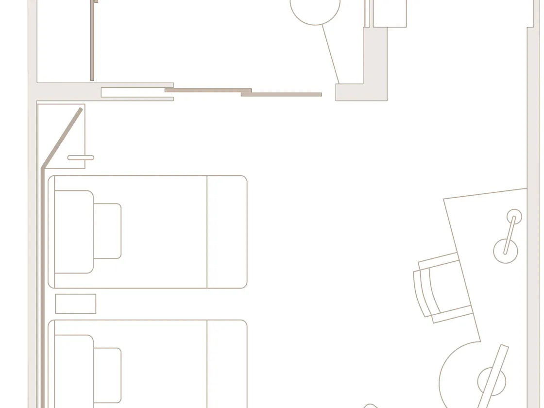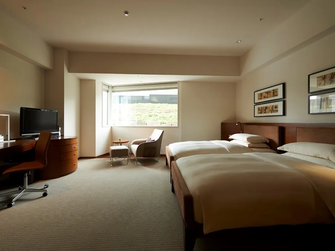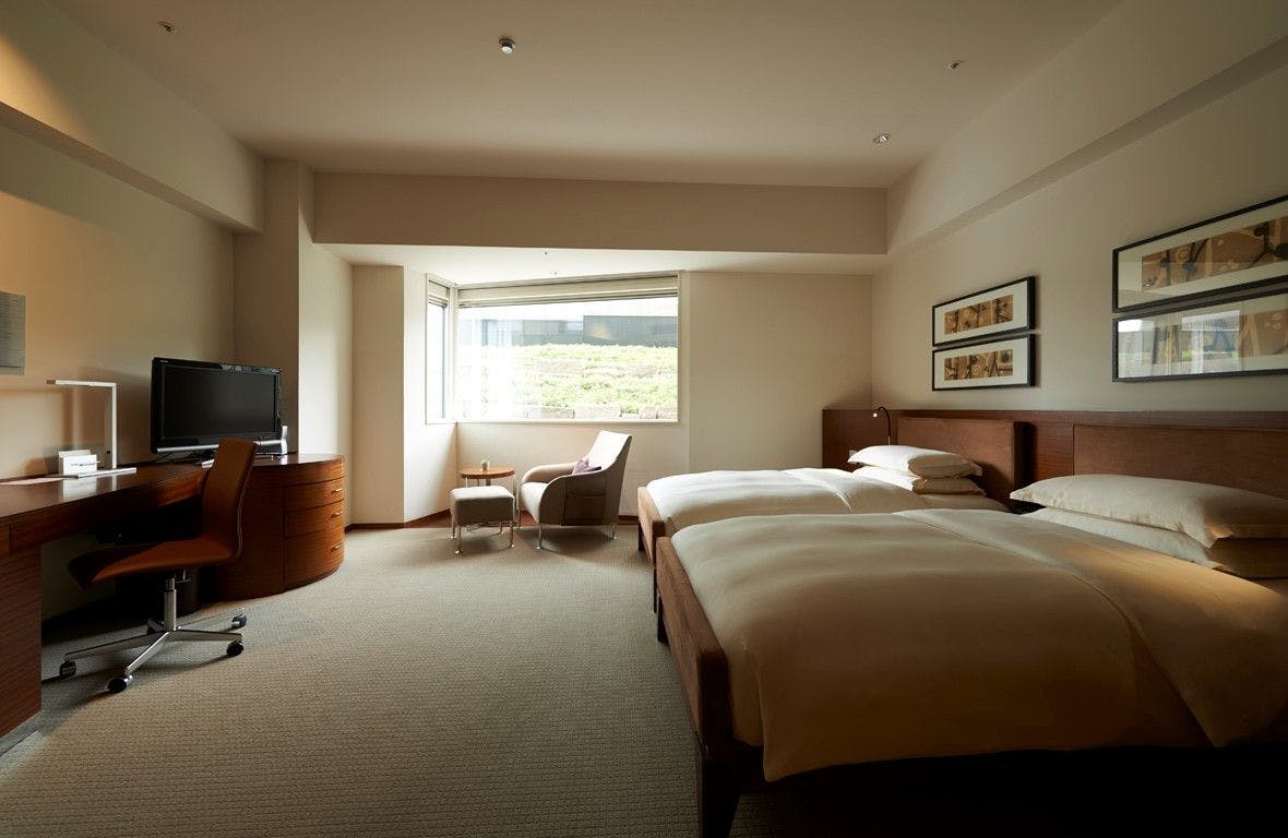 心地よい温もり感溢れる室内に、ゆったりとインテリアが配されたグランド デラックス ルーム。55平米の客室に、ゆとりあるバスルーム、イタリア フレッテ社のリネンが心地よいベッド(2台)、ワークデスクなど充実したファシリティが快適な滞在をお約束します。 ※禁煙のお部屋のみとさせていただきます。