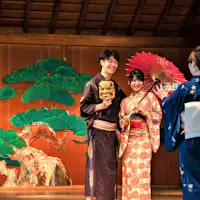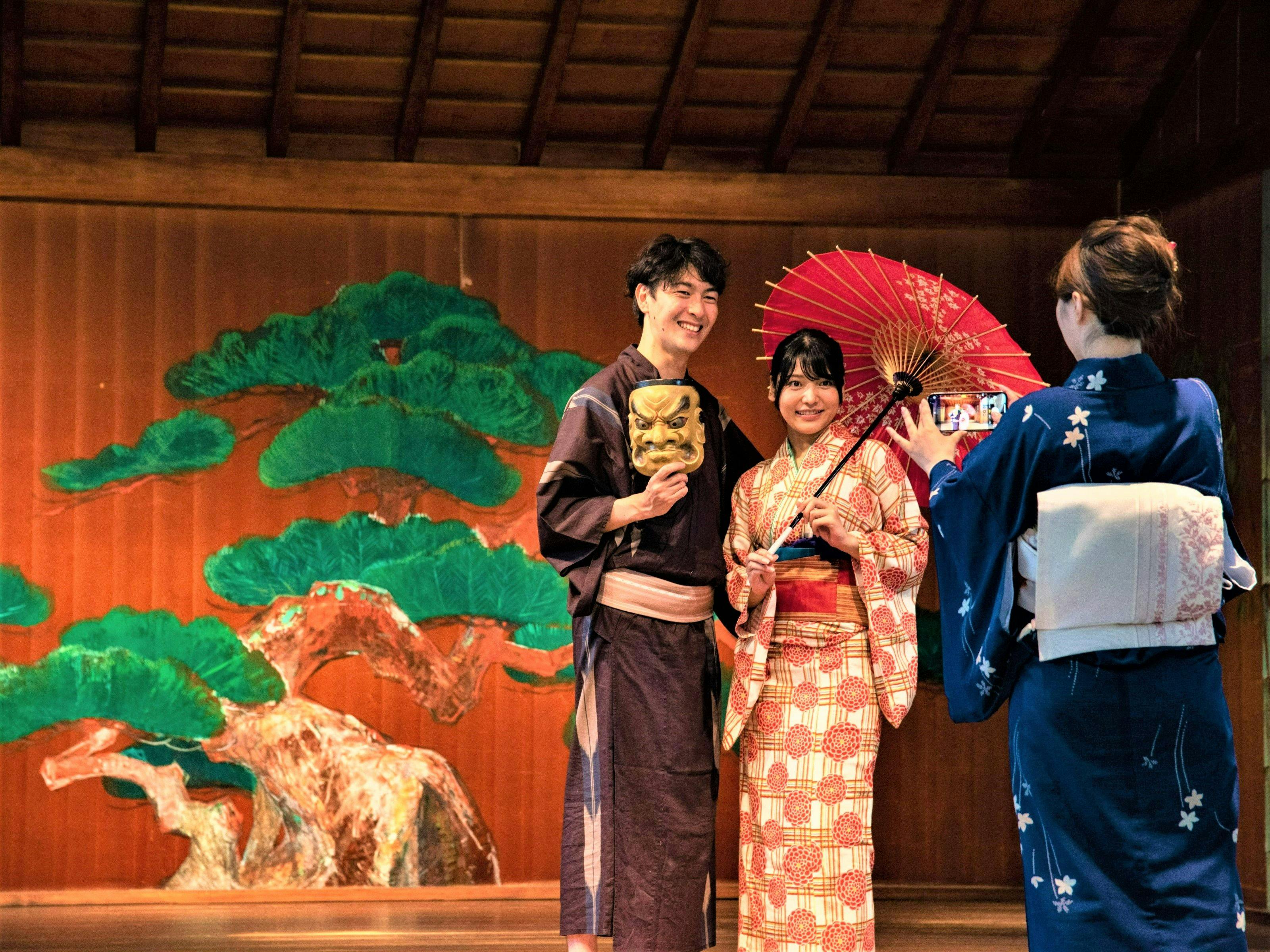 能面や和傘などのアイテムを使って自由に写真を撮影いただけます