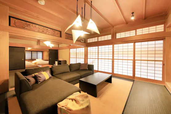 全国各地の銘木を厳選して10年、日本文化の礎が詰まった伝統建築に12年、計22年の歳月を経てお披露目となった総欅作りの母屋があなたをお出迎えいたします。日本全国から丹念に銘木を集め10年、建築に12年、合計22年の歳月を費やして完成した総欅造りの母屋。京都二条上城を模した造りは、今日では同じ物を建てることは至難のこといわれています。 絢爛豪華でありながらも、洗練された雅な空間が奏でる「静」と「動」の完全調和をお愉しみください。