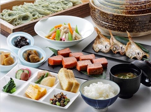 | 朝食 | 【料金】 和・洋ブッフェ 大人2,800円/小学生 1,500円/未就学児まで無料 【時間】 6:30~9:30(最終入場) |