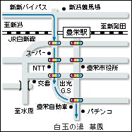 ※新潟西I.Cより新新バイパスで競馬場I.Cを降りて豊栄方面へ。月岡温泉まで40分。