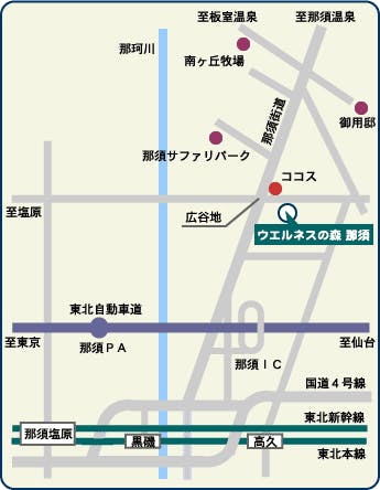 ■電車■東北新幹線利用 東京駅→(大宮駅)→那須塩原駅下車・・・東京から70分 ホテルまでは車で30分 ホテル⇔那須塩原駅間の送迎バス(要予約)をご利用いただけます。 ■電車■東北本線利用 上野駅→黒磯駅下車・・・東京から150分 ホテルまでは車で20分 ■車■東北自動車道 東京→180km→那須IC→9km→ホテル