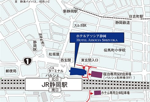 JR静岡駅北口から徒歩1分 東名高速道路静岡ICより約4km(15分) 静清バイパス昭府ICより約5km(20分)