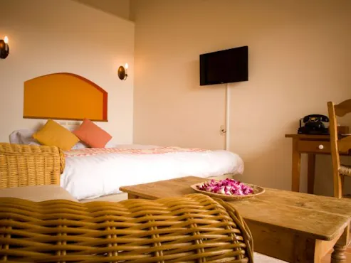 近場にして海外へ行った時のような気分が味わえる「リゾートホテル コルテラルゴ伊豆高原」。高台にある、真っ白な壁が目をひくプロヴァンス風の外観。目の前には高原、遠くにはオーシャンビューが広がる絶好のロケーションです。館内に一歩足を踏み入れれば、日本と思えないほど神秘的。ブタ皮チェアなどの輸入家具、バリのキッチュな雑貨、繰り返し奏でられる民俗調の音楽。いつもの旅と何かが違う筈です。客室もバリ島のヴィラ風、地中海風など世界の名リゾートを意識しました。天然温泉専用露天風呂付やプライベートプール付のテラスでボーっと海を眺めるのもよし、心地よいベッドで眠りたいだけ眠るもよし。日常に疲れたあなたの体と心を思う存分癒してください。やっぱり何もしない。その決断を後悔させません。旅の一番の目的は「コルテラルゴ」なのだから。