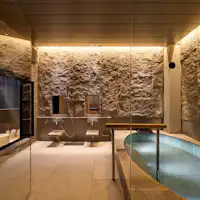 ・温泉: あり ・かけ流し: なし ・にごり湯: なし ・補足事項: (加温、加水) 利用開始時間 15:30/17:00/20:00/21:30/23:00/6:30/8:00 料金 75分 5,500円 半露天風呂:きのか、内風呂:ほのか