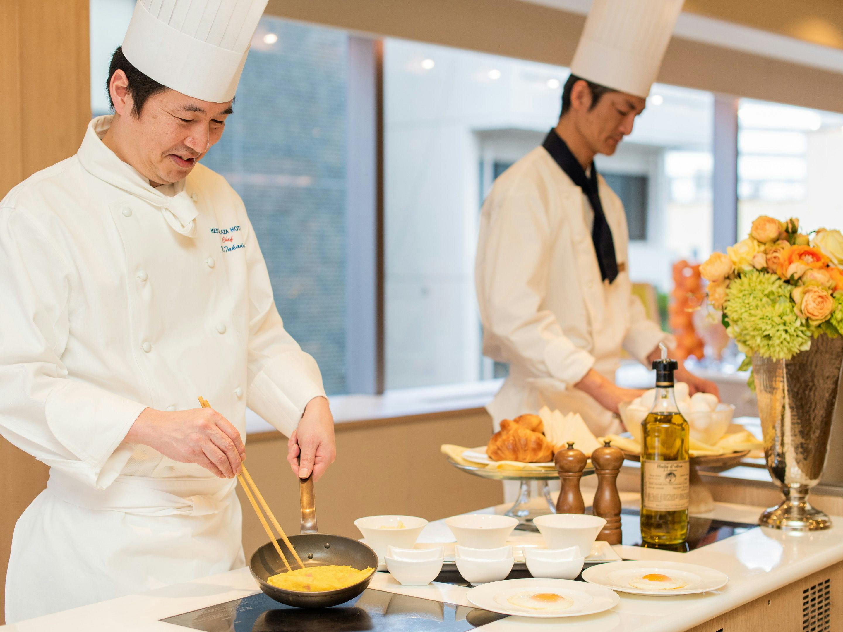 | 朝食 | 和食・洋食バイキング 2,300円 レストラン「ル クレール」 営業時間 7:00~10:00 約30種類以上のメニューを取揃えた和洋混合バイキングをご用意しております |