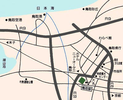 ■お車でお越しの場合 【京阪神方面より】 ・大阪から3時間半 中国道 佐用I.C.からR373、R53を北上 【岡山方面より】 ・岡山から2時間半 中国道 津山I.C.からR53を北上 ■飛行機をご利用の場合 ・東京(羽田)から1時間20分→鳥取空港よりお車で20分 ■列車をご利用の場合 【京阪神方面より】 ・特急「スーパーはくと」で、大阪から2時間半 京都から3時間 【山陽方面より】 ・特急「いなば」で岡山駅から鳥取駅まで2時間半