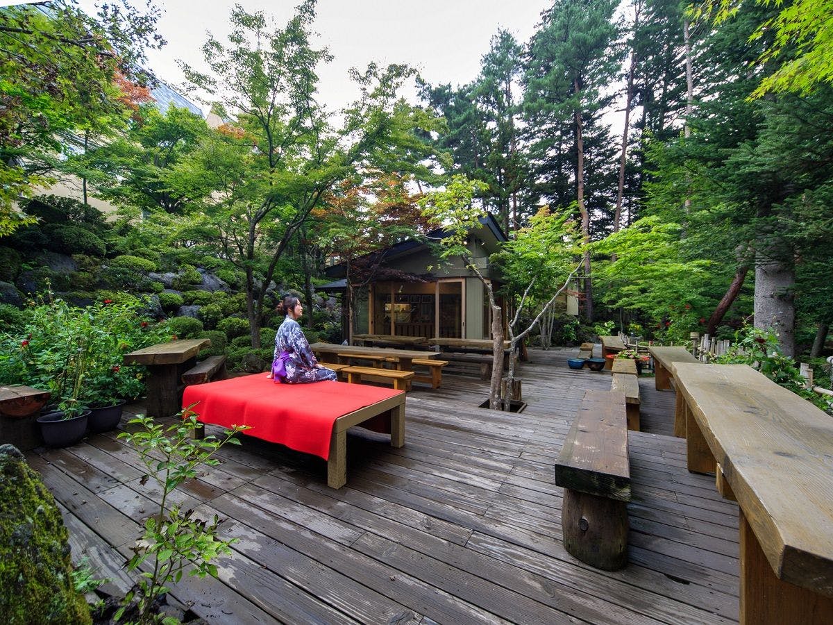 雄大な富士山麓に立つ、自然が美しい日本庭園を設えた温泉旅館
