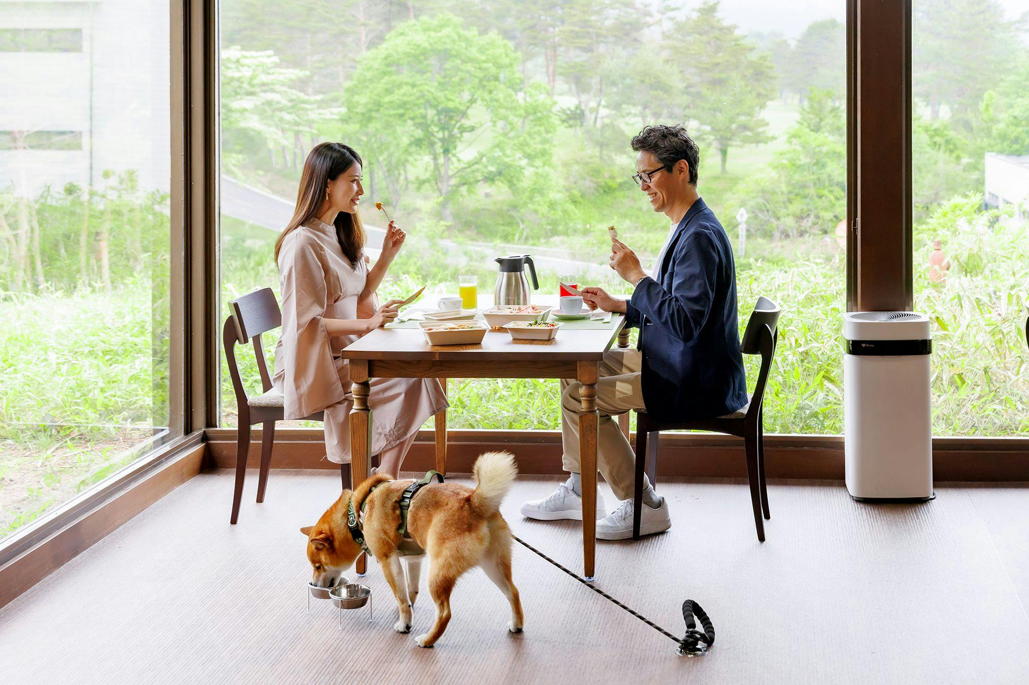 ドッグフレンドリールームがリニューアルされたと聞いて、宿泊しました。2度目の利用です。部屋がフローリングに変わりとても衛生的です。愛犬と利用できるラウンジもできました。愛犬と一緒にコーヒーや紅茶を楽しめます。ドッグランは変わらず素晴らしいです。以前は1面のみでしたが、2面に増えてました。愛犬との宿泊でも2食付きプランが加わり、浅間ディナーを美味しく頂きました。特に花豆のスープが良かったです。愛犬も楽しんでいたようで大満足です。