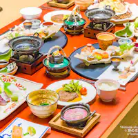 お部屋にてこだわりの新鮮な地元食材を中心に、旬のものを彩り豊かにお召し上がりいただけるよう当館板前が工夫を凝らした懐石料理をお召し上がりください。すこしでもお料理を楽しく召し上がっていただけるよう、器にもこだわってご提供いたしております。