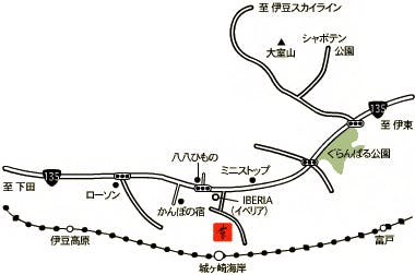 ■電車をご利用の場合 伊豆急行 伊豆高原駅下車・・・タクシー5分 城ヶ崎海岸駅下車・・・タクシー5分 ※到着後お電話いただければお迎えにあがります。(※運用時間・15:00~17:30) ■お車をご利用の場合 東京方面より 東名高速厚木ICより約1時間30分 関西方面より 東名高速沼津ICより約1時間30分 ■隠れ家■ 「夢のや」は見つけにくい静かな里の隠れ宿 ◇お車でお越しの際には、お電話にて道順をご案内差し上げます。 ◇電車をご利用の皆様には最寄り駅よりご連絡をいただき次第お迎えにまいります。