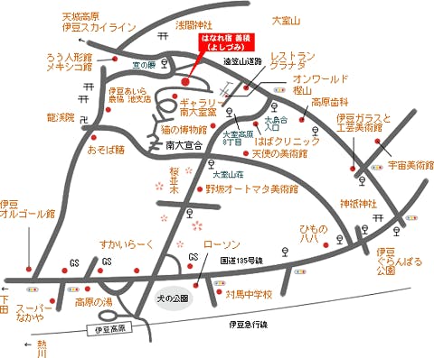 伊豆急行線伊豆高原駅からタクシーで約8分