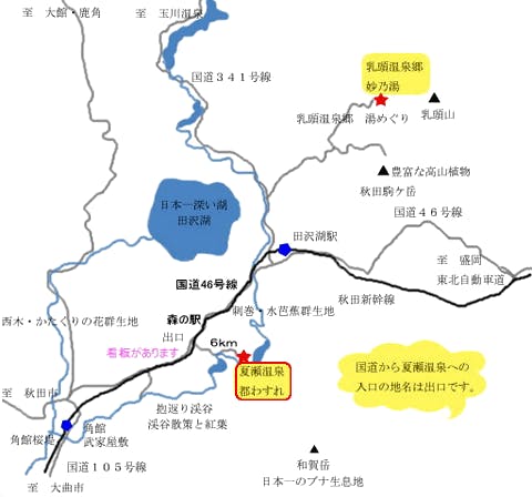 田沢湖駅から車で約30分