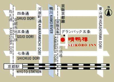 ■JR京都駅より タクシー8分 市バス17・205系統で5分河原町五条バス停下車徒歩5分 徒歩25分 ■京阪電鉄清水五条駅より徒歩2分 ■お車の場合 東京方面より/名神高速京都東インターで降り、京都市内方面国道1号線(五条通り)を西へ約10キロ 大阪方面より/名神高速京都南インターで降り、京都市内方面国道1号線(京阪国道)を北へ約10キロ
