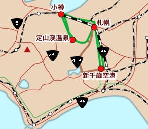 ■公共交通機関をご利用の場合 【札幌駅から】 バスターミナル12番 じょうてつバス 定山渓温泉 行 豊平峡温泉 行 所要時間/約80分 大人片道/790円 定山渓「湯の町」バス停下車 徒歩0分 ■お車でお越しの場合 ○札幌から定山渓温泉まで 国道230号線経由、車で約50分 ○小樽から定山渓温泉まで 道道1号線朝里峠経由、車で約60分
