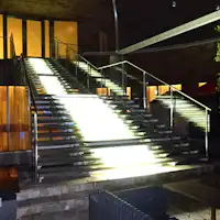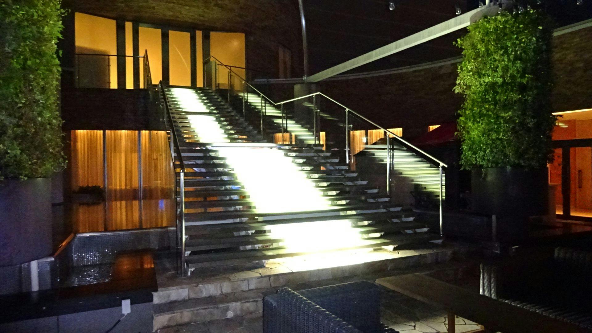 エントランス正面でゲストを迎える輝くガラスの階段は、ホテルの象徴的存在です。