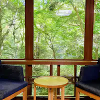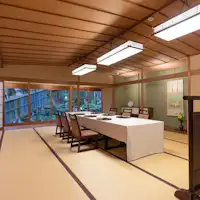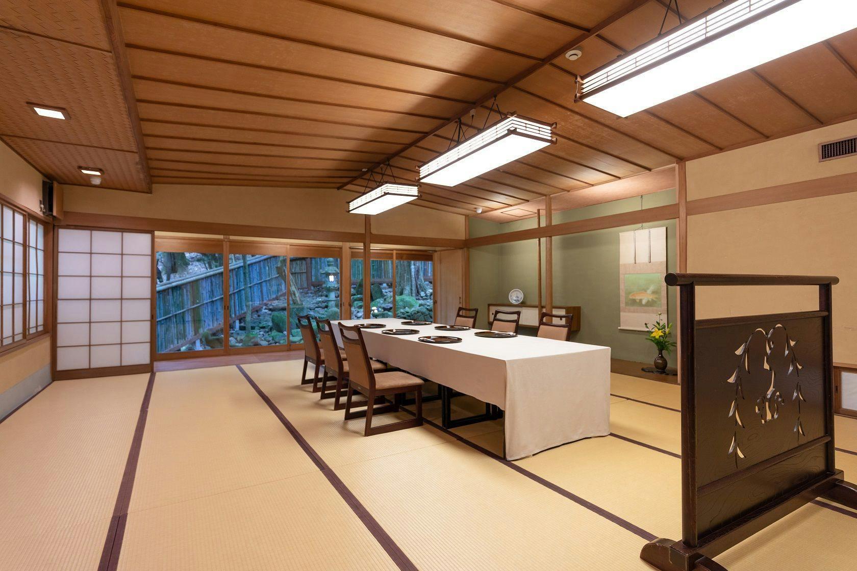奈良春日奥山 月日亭は世界遺産に指定された、春日山原始林のただ中にあり、明治35年(1902年)に奈良県知事が要人をもてなす迎賓館として建てられました。窓からは、あたり一面に広がる原生林が見渡せ、静寂の中に聞こえる「野鳥のさえずり」や「川の音」を聞きながら、心づくしの会席料理をご堪能下さい。
